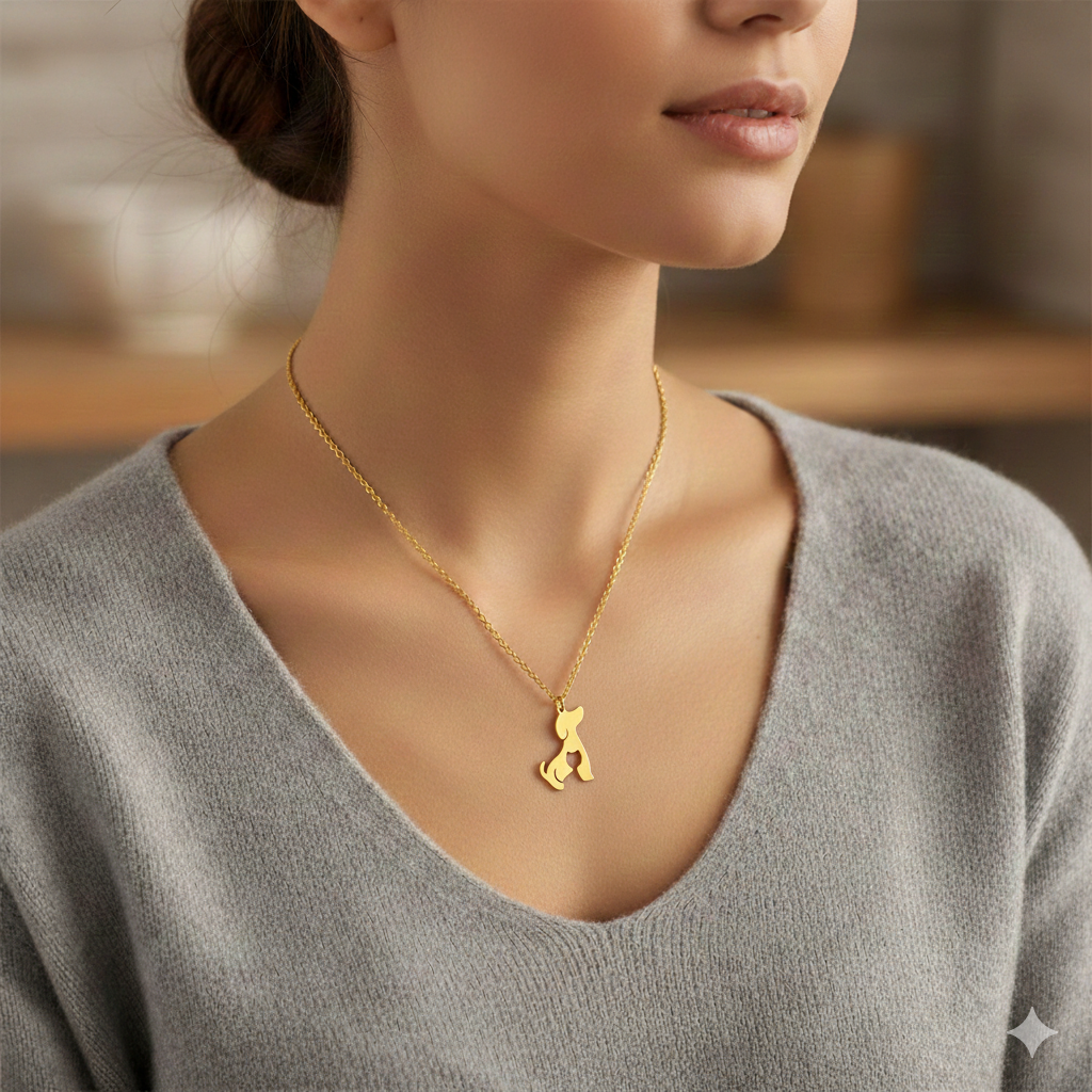 ¡Deja que tu amor por los animales brille con nuestro collar para mujer! Con un adorable dije en forma de perro y una dulce silueta de gato en su interior, este collar es el accesorio perfecto para las amantes de los animales que desean llevar consigo a sus fieles compañeros felinos y caninos a todas partes.