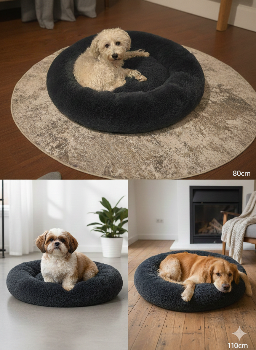 Esta cama dona antiestrés ha sido especialmente diseñada para brindarle a tu PERRO O GATO el máximo confort y relajación. La forma de dona crea una sensación de protección y seguridad, lo que ayuda a proporcionar un mejor sueño y descanso, disminuir la ansiedad y el estrés en tu peludo amigo.