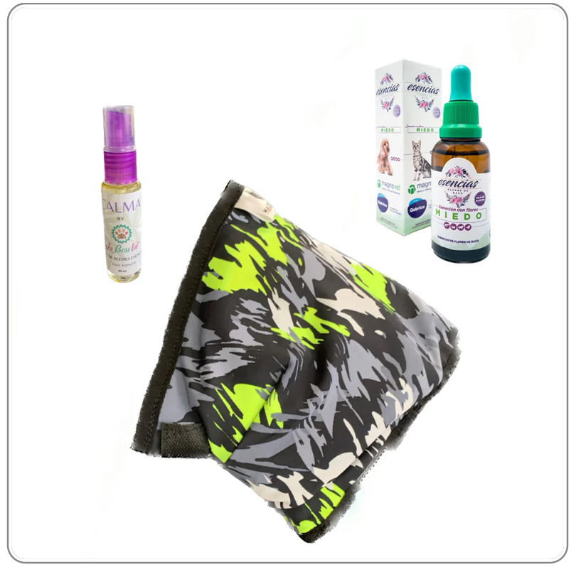 Kit diseñado con el propósito de brindar bienestar a tu mascota cuando es muy nerviosa o están expuestos a ambientes de estrés y fuertes sonidos como la pólvora, los truenos, la aspiradora, el secador de peluquería, entre otros.